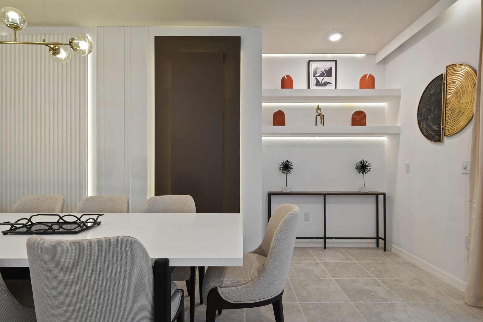 Dining Area: A stylish dining table 14 seats, plus an additional 4 seats at the kitchen island.