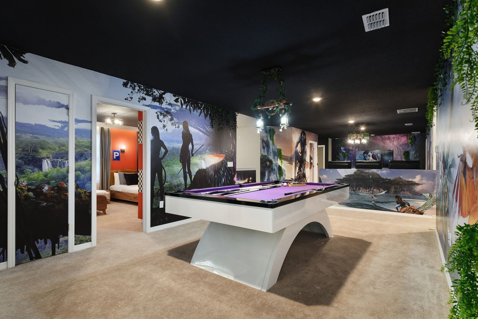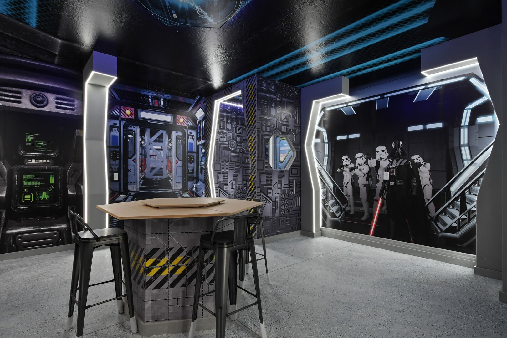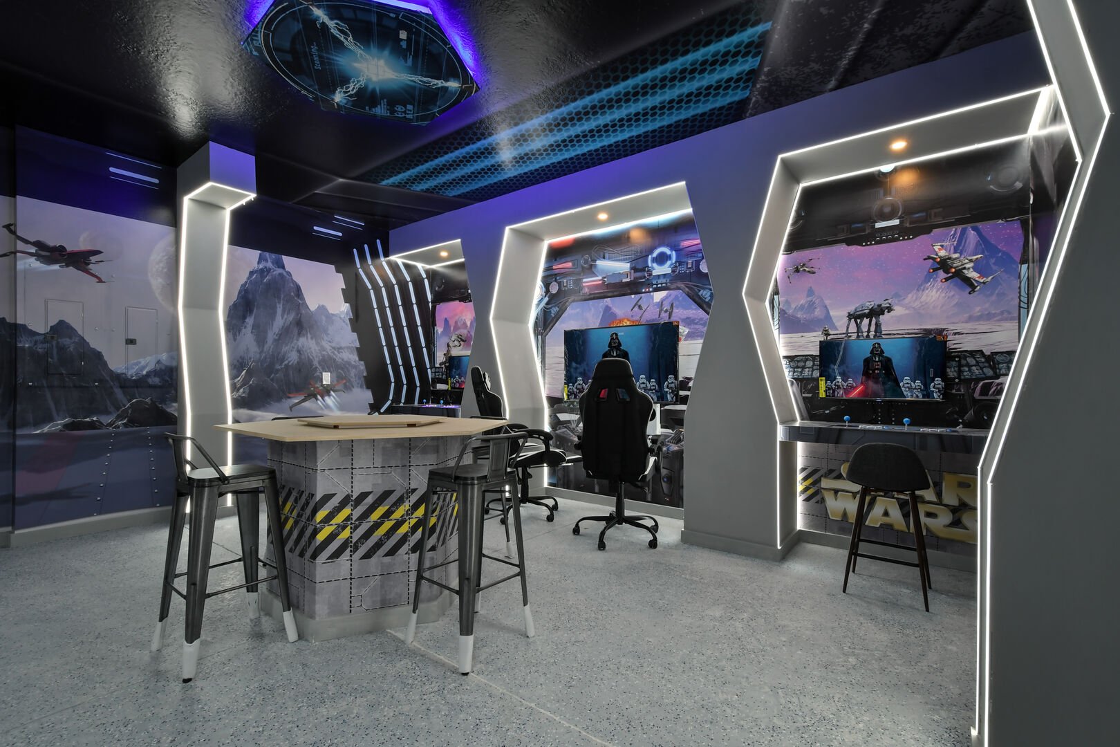 Game Room: Equipped with game machine and pool table for endless entertainment with Star Wars Theme.