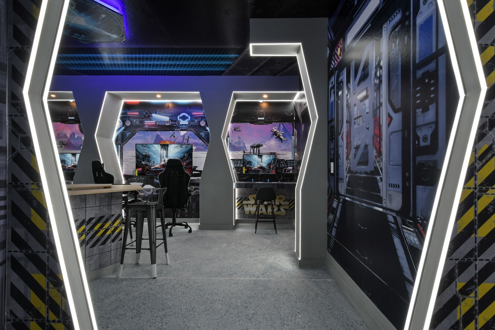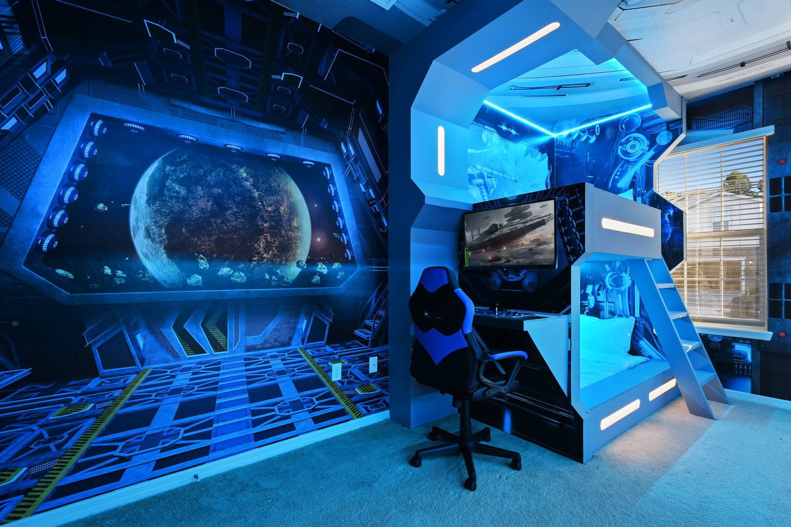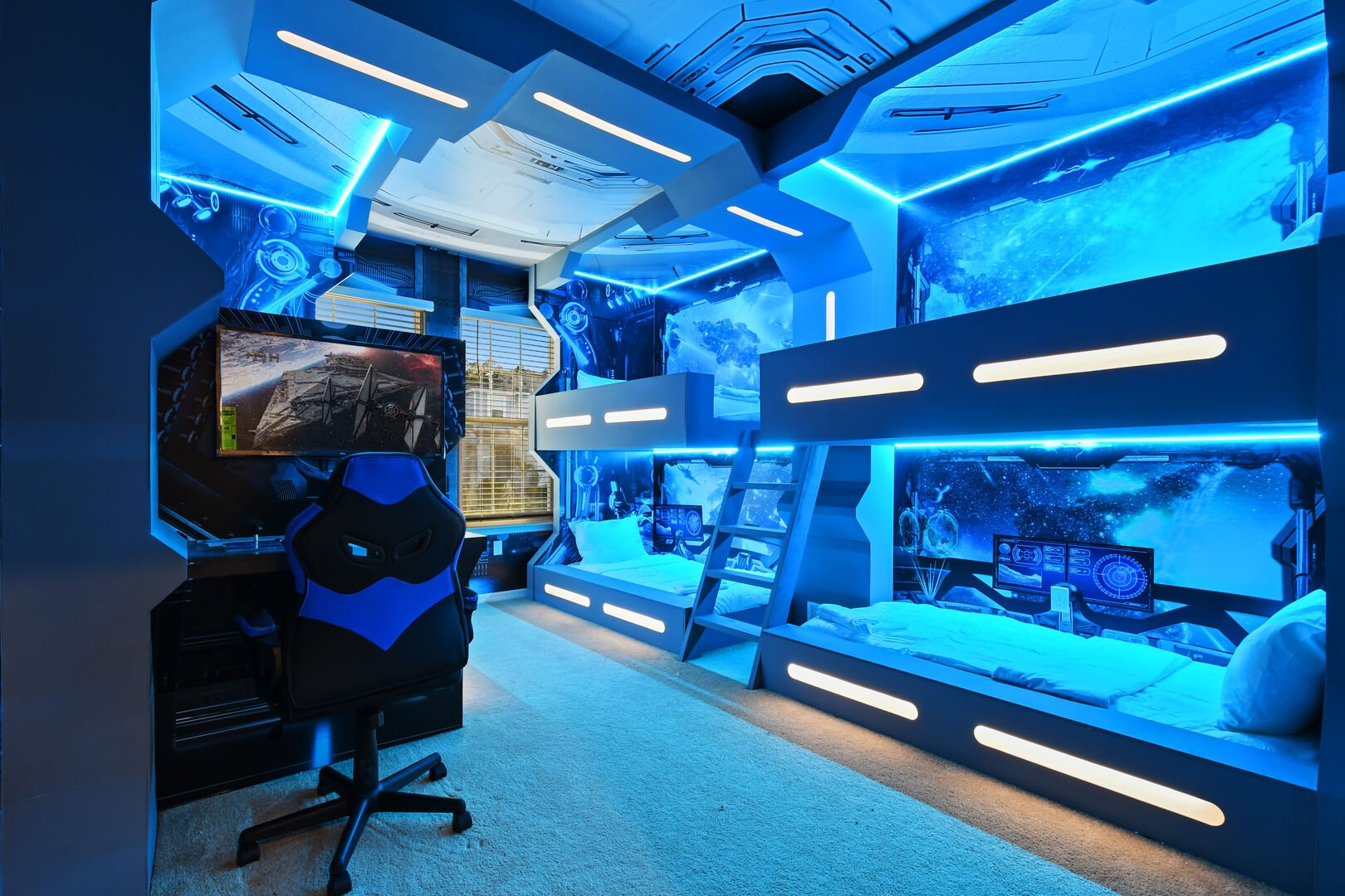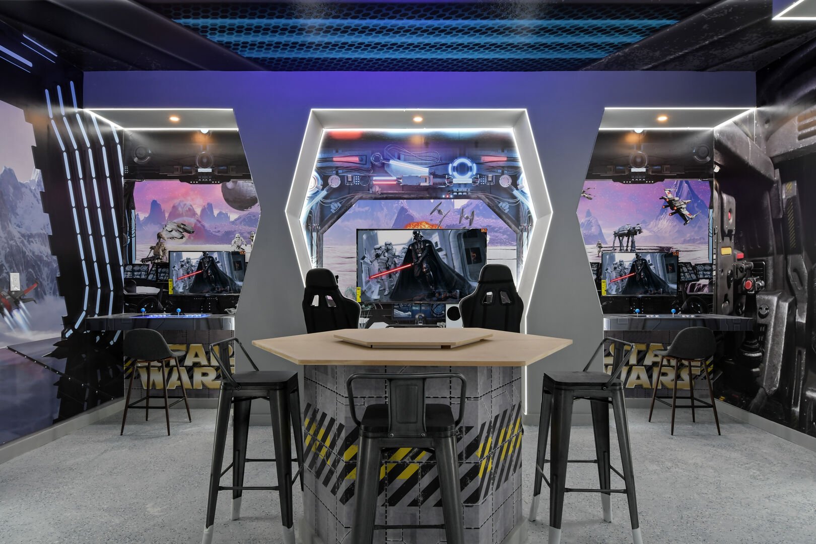 Game Room: Equipped with game machine and pool table for endless entertainment with Star Wars Theme.