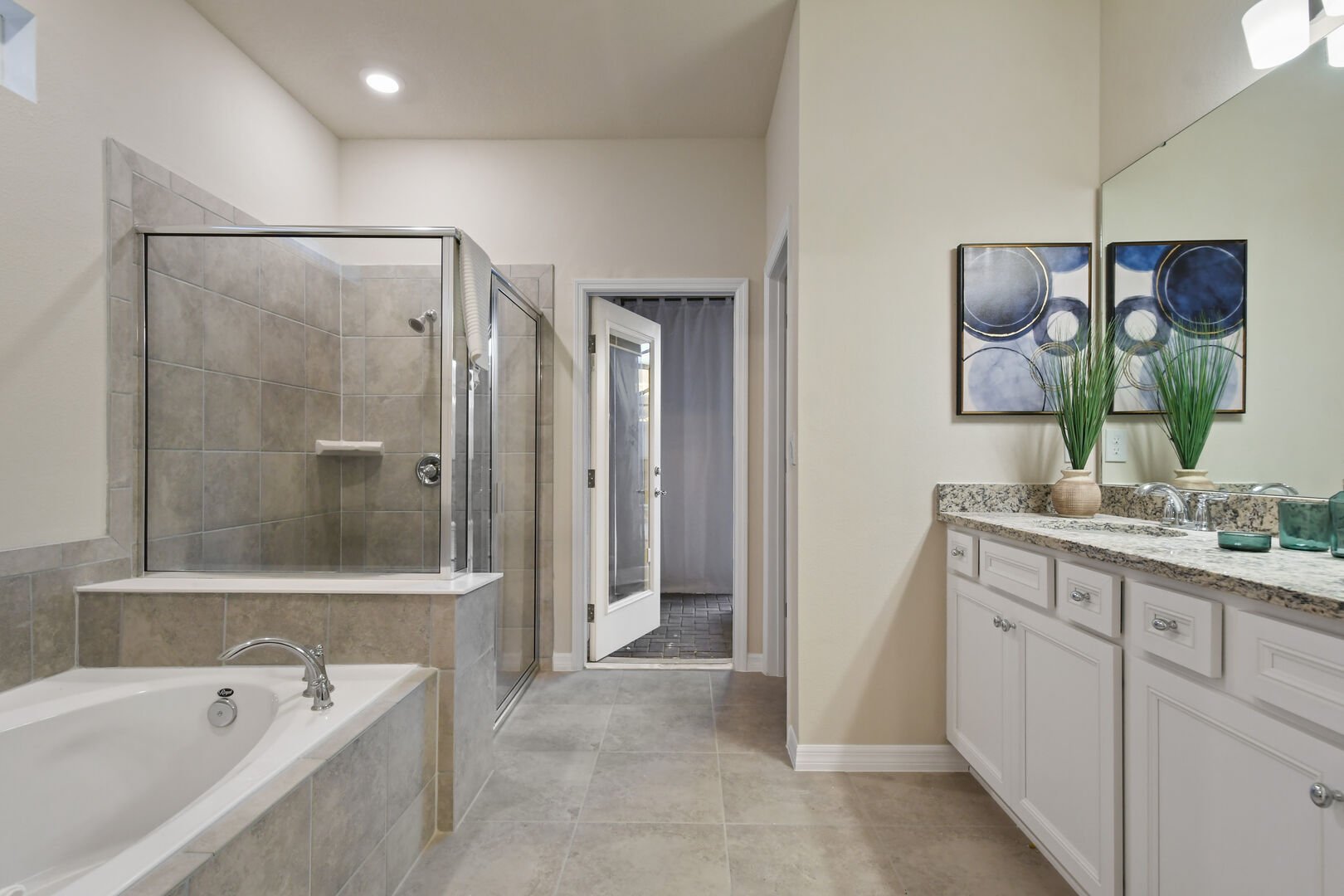 Master Bedroom: King bed, en-suite bathroom with luxury tub and walk-in shower.